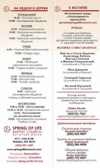 Еженедельный церковный бюллетень - это информация о жизни церкви, а также дни рождения членов церкви на ближайшую неделю.